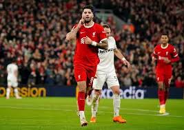 West Ham’s lead lasted just four minutes as Federico Chiesa marked his first start for the Reds with an assist after the winger’s acrobatic volley into the ground bounced up for Jota to head the equaliser.