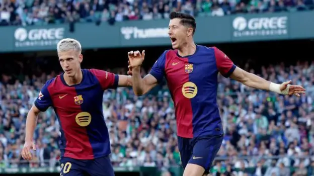 Lewandowski scored his 16th goal of the league campaign before Ferran Torres cancelled out Giovani Lo Celso’s penalty – but Assane Diao snatched a point for Betis with a late equaliser.