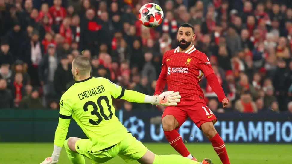 Salah’s goal came when he latched onto a brilliant Curtis Jones through ball and slotted over the advancing Lucas Chevalier in the 34th minute.