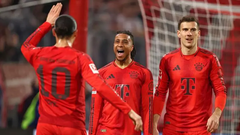 After a frustrating 45 minutes Bayern took the lead in the third minute of first-half injury time after excellent link-up play in midfield allowed Leroy Sane to square for Michael Olise – the former Crystal Palace midfielder making no mistake for his seventh league goal of the season.