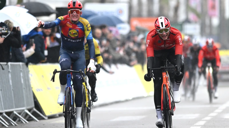 Denmark’s Mads Pedersen claimed victory on the 209.8km route from Saint-Julien-en-Saint-Alban to Berre l’Etang, fending off Tarling in the final 100 meters, with Watson securing third place.