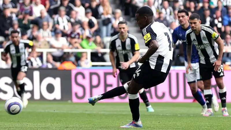 Alexander Isak’s penalty, awarded after a pitchside review, gave Newcastle the lead in added time.
