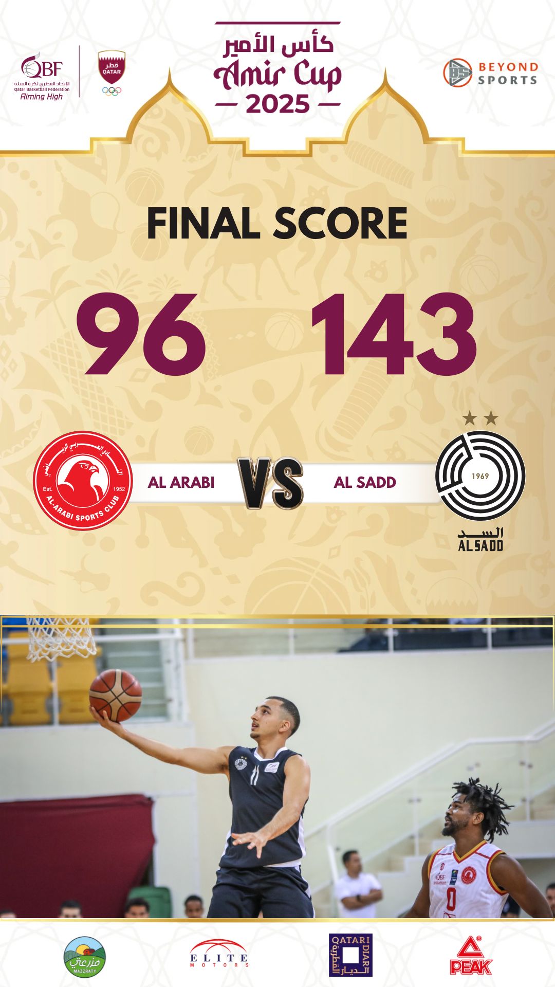 Doha: Al-Arabi, the reigning champions, advanced to the semi-finals of the 2024-2025 Amir Cup Basketball Championship despite suffering a significant 143-97 defeat against Al-Sadd during the final round of the group stage on Thursday evening at Al-Gharafa Sports Hall.