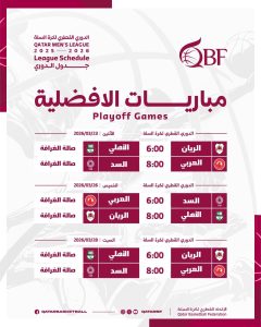 Doha: The semi-final “Playoffs” stage of the 2025–2026 season Qatar Men’s Basketball League will tip off on Monday, March 23, following the decision by the Qatar Basketball Federation (QBF) to resume domestic sporting activities after a temporary suspension due to prevailing regional circumstances.