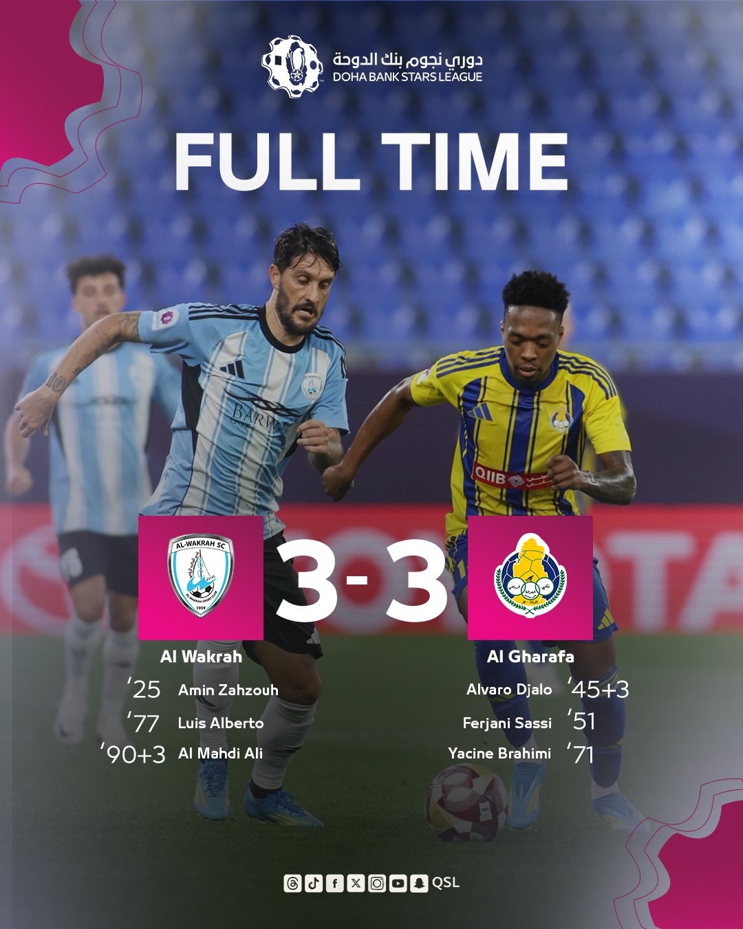 The thrilling draw keeps both sides in contention as the season approaches its final stages, with Al Gharafa moving to 35 points while Al Wakrah climbed to 24 points in the standings.