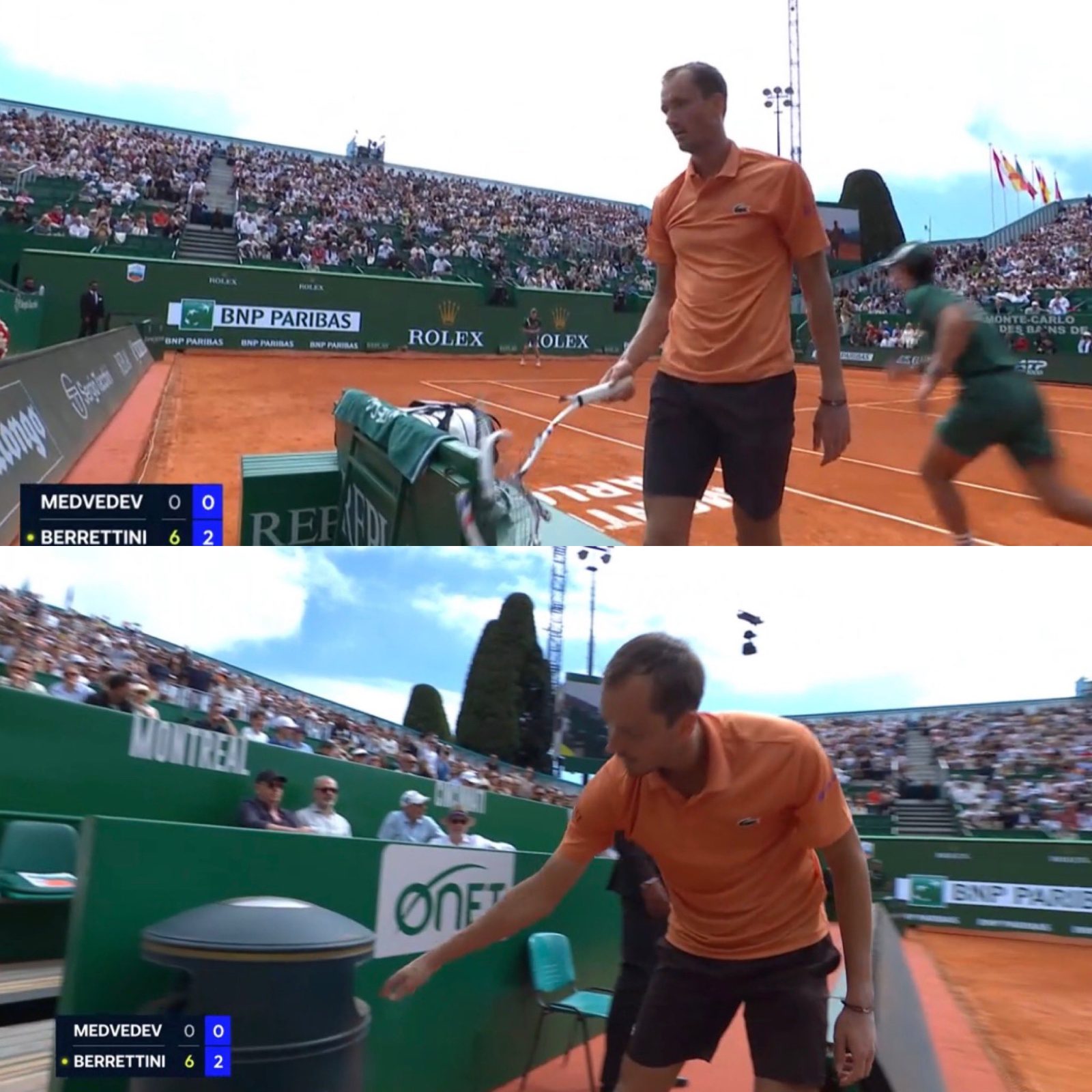 Daniil Medvedev was knocked out of the Rolex Monte-Carlo Masters following a straight-sets defeat to Matteo Berrettini on Tuesday.