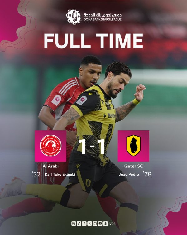 Doha: Al Arabi SC and Qatar SC settled for a 1-1 draw in a closely-contested Week 21 encounter of the 2025-2026 Qatar Stars...