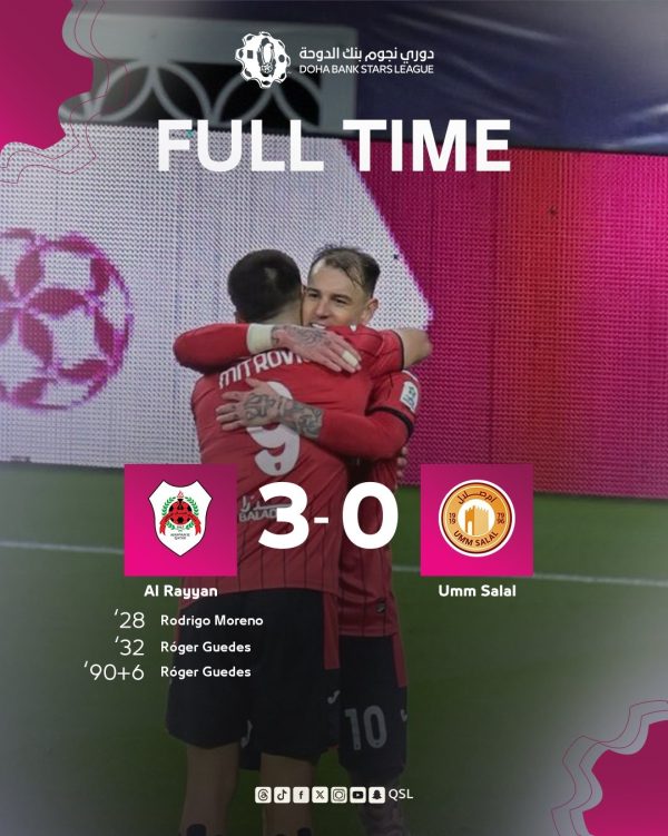 Doha: Al Rayyan SC secured a convincing 3-0 victory over Umm Salal SC in their Week 21 clash of the 2025-2026 Qatar Stars...